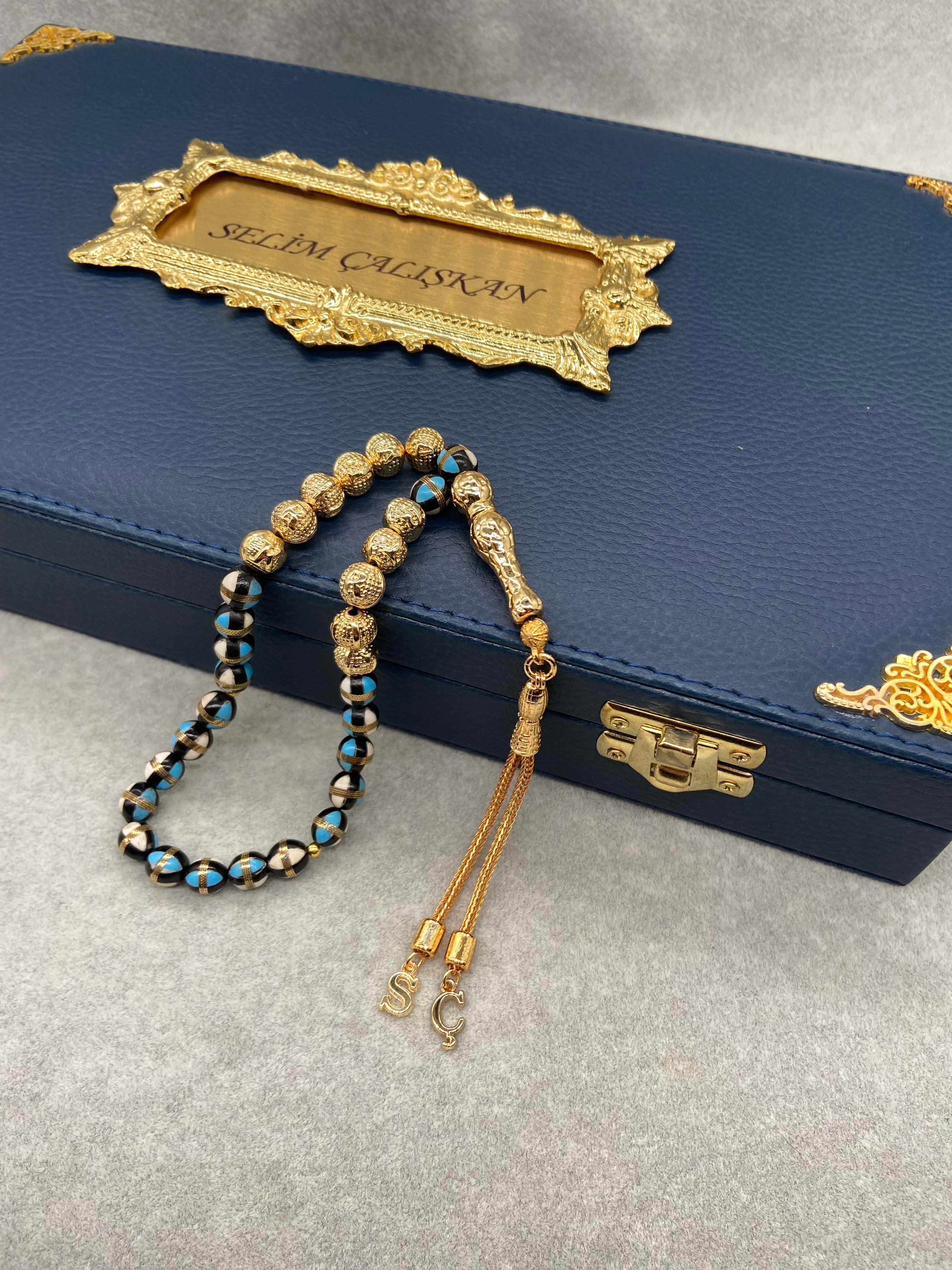 Kişiye Özel İsimli Metal Üzeri Altın Yaldız Kaplamalı Mineli Kuka BİLEK BOY Tesbih + İsimli Vip Kutu